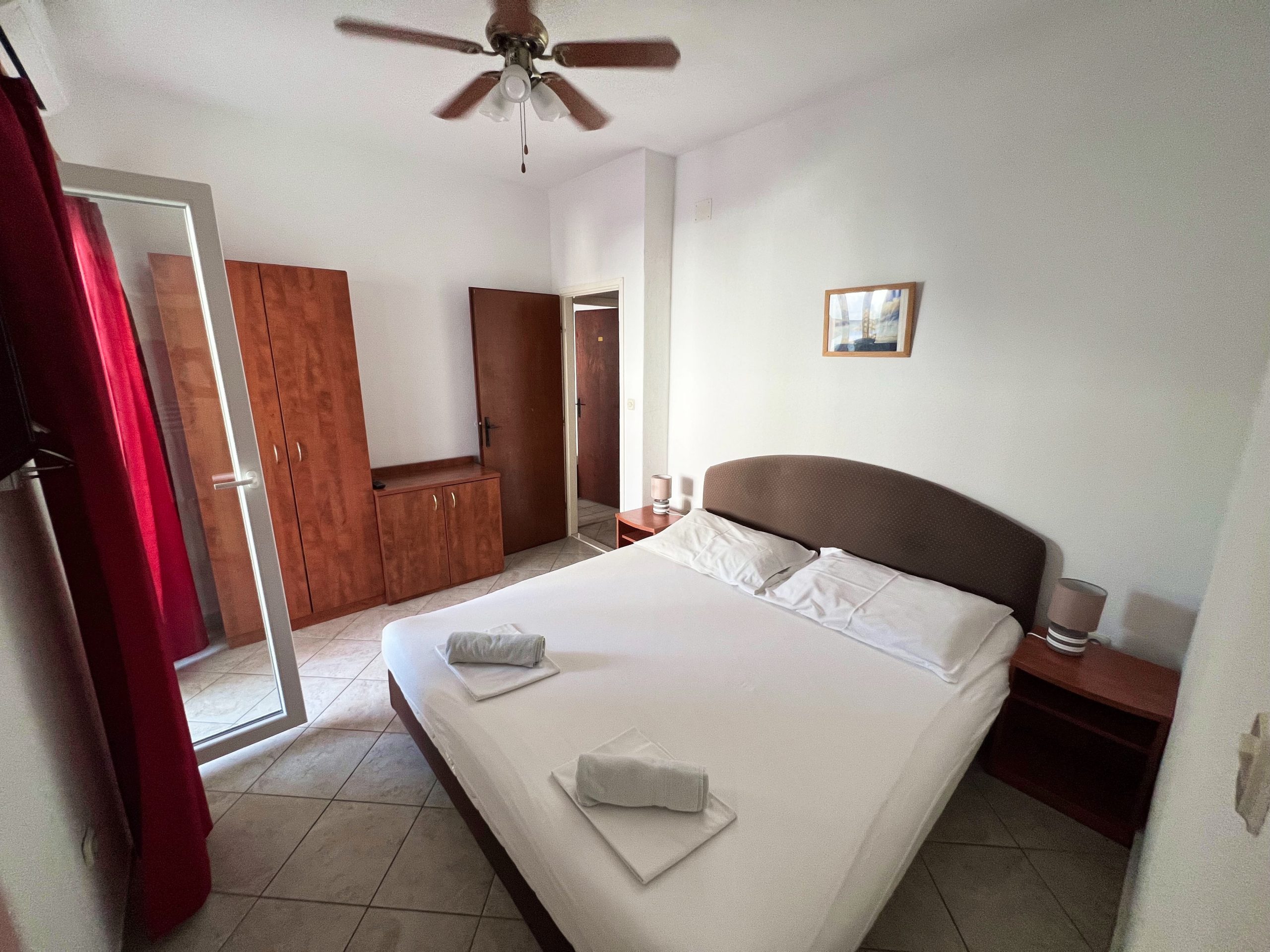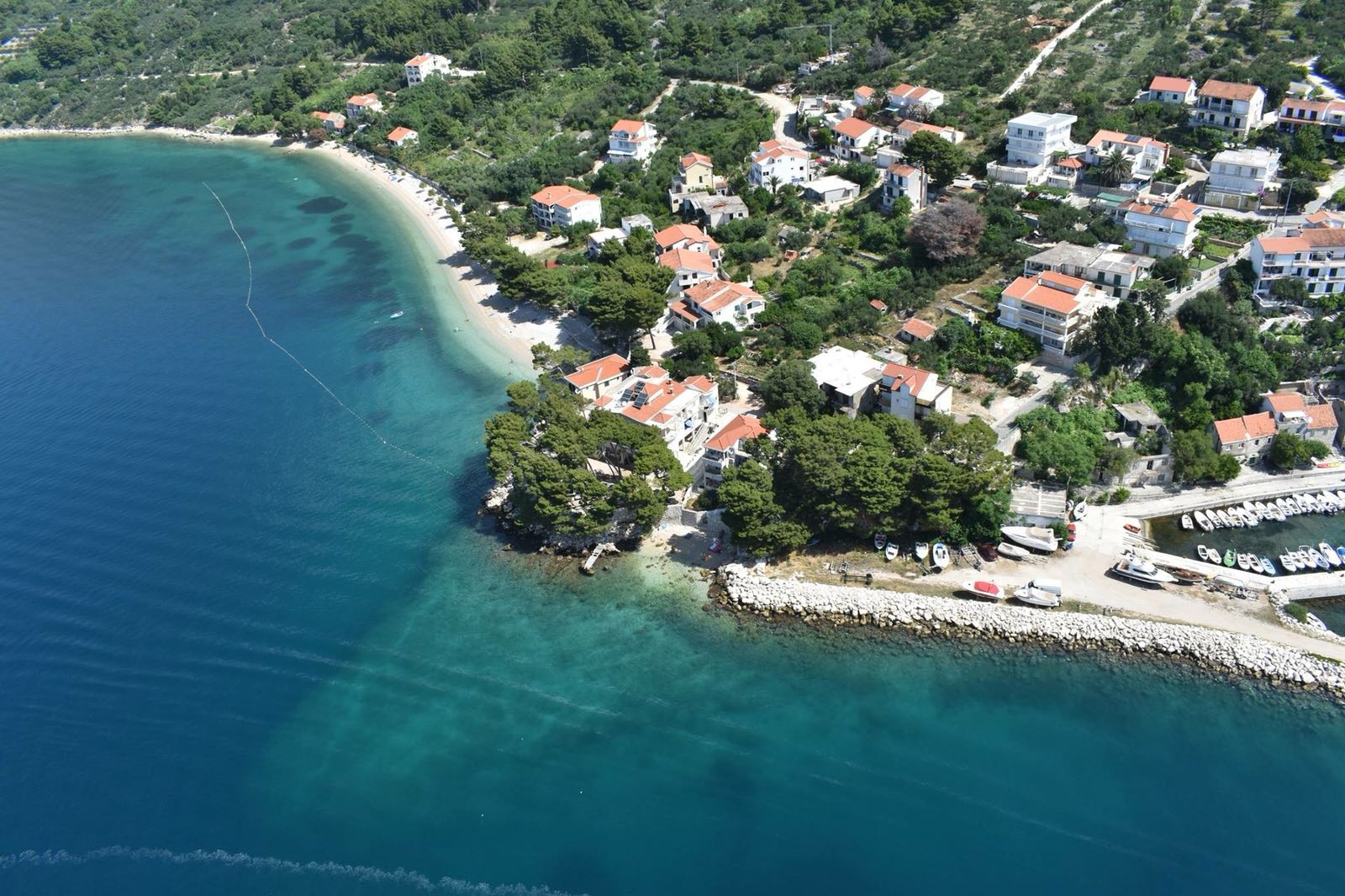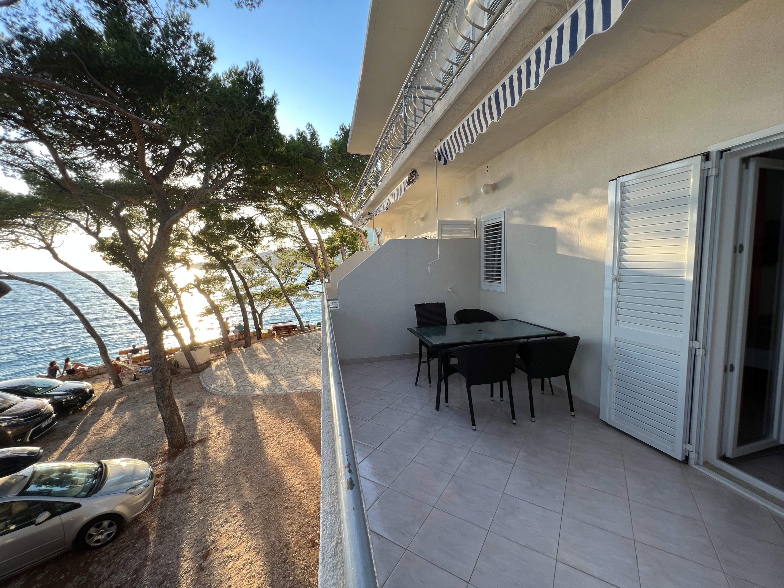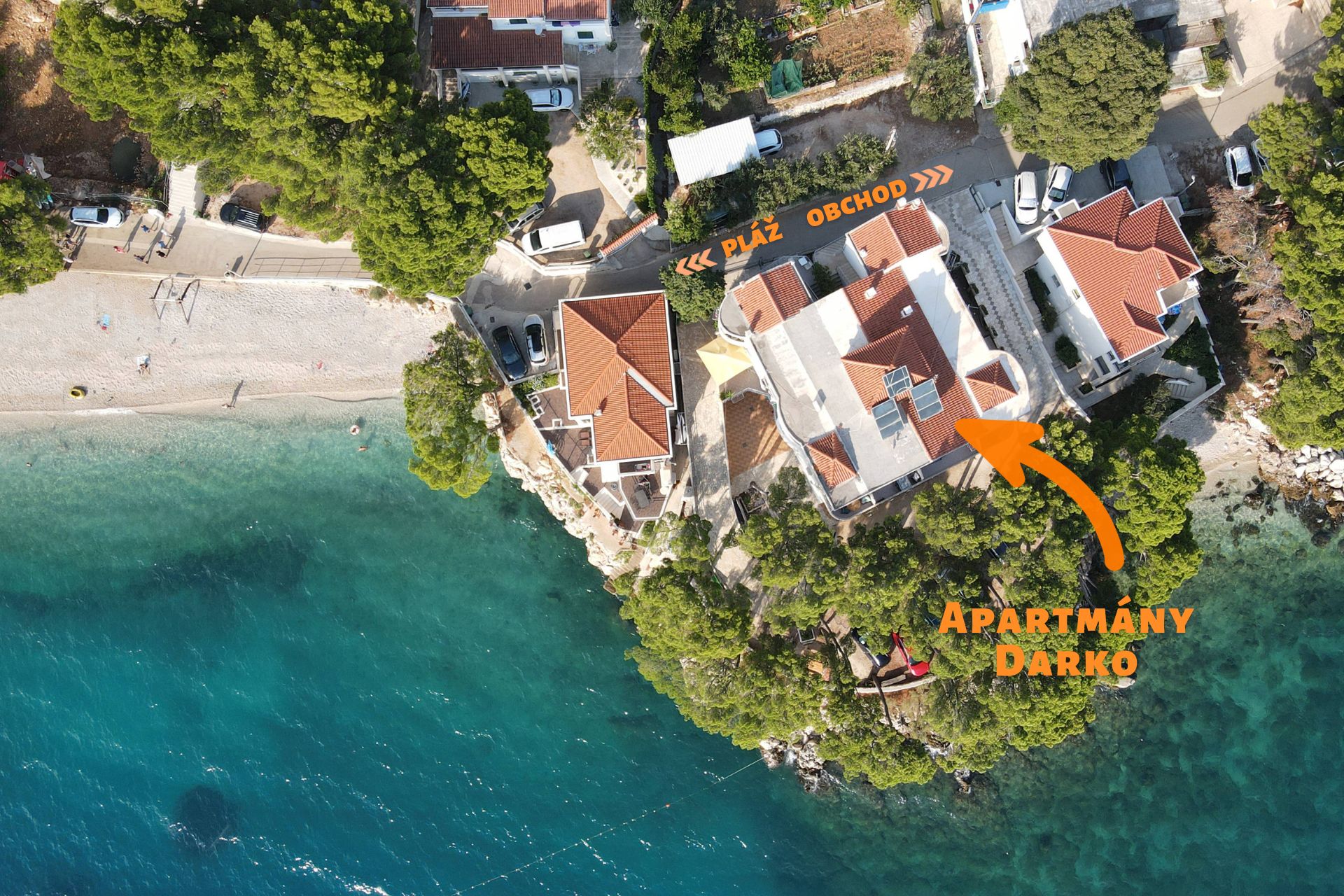 Apartmány DARKO leží přímo u moře, jen pár kroků od hlavní pláže, na klidném místě ve stínu borovic. Pod domem je menší soukromější pláž a ze všech balkónů je krásný výhled na moře.