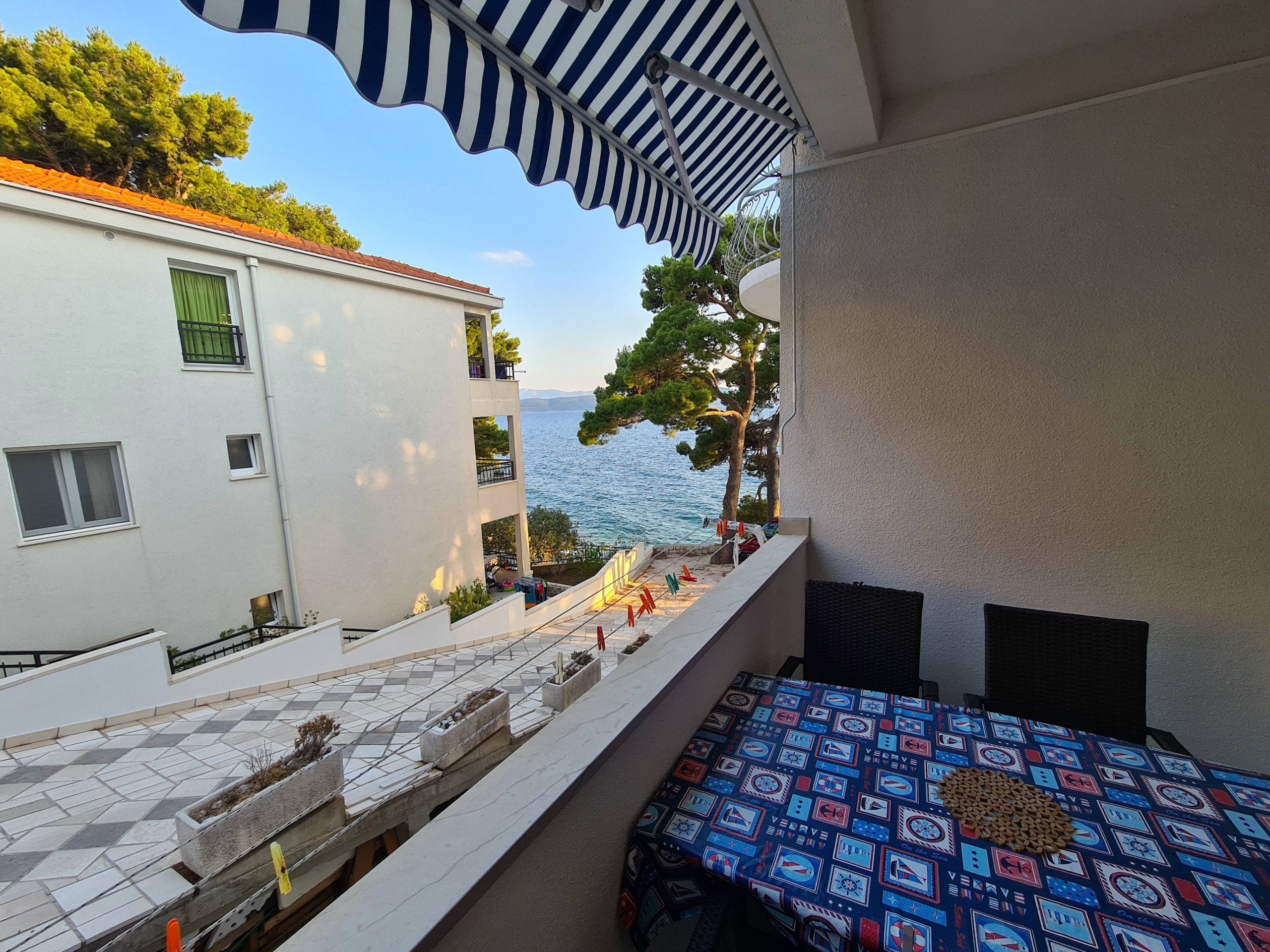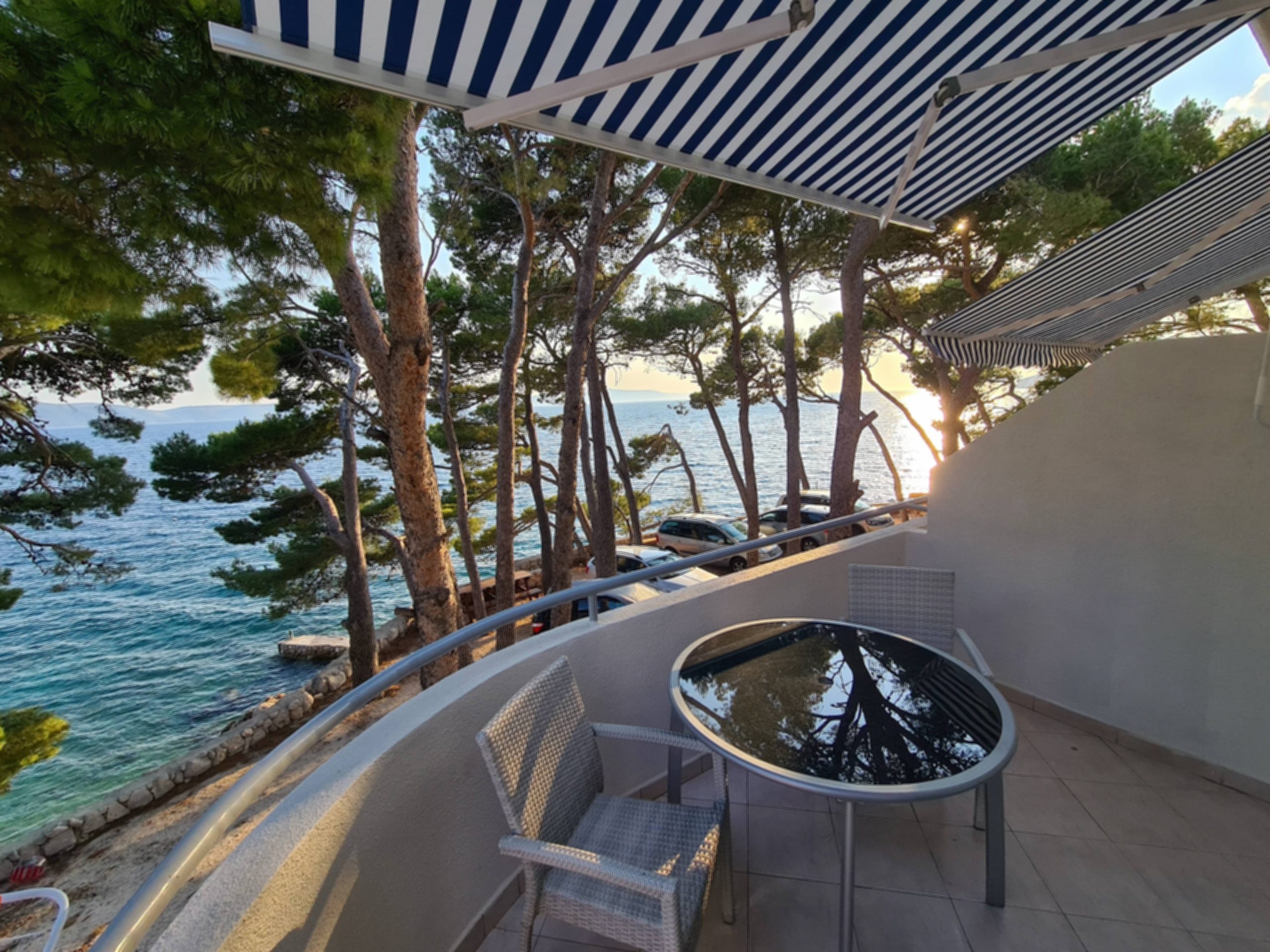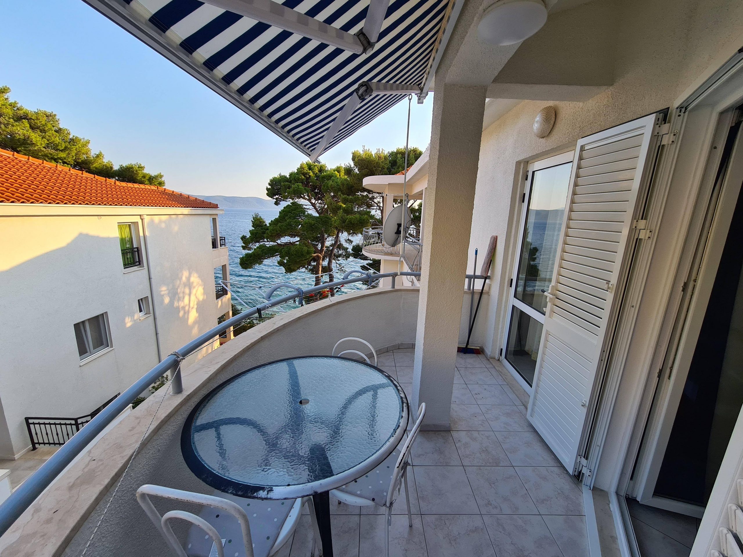 - balkon s posezením, výhled na moře, markýza