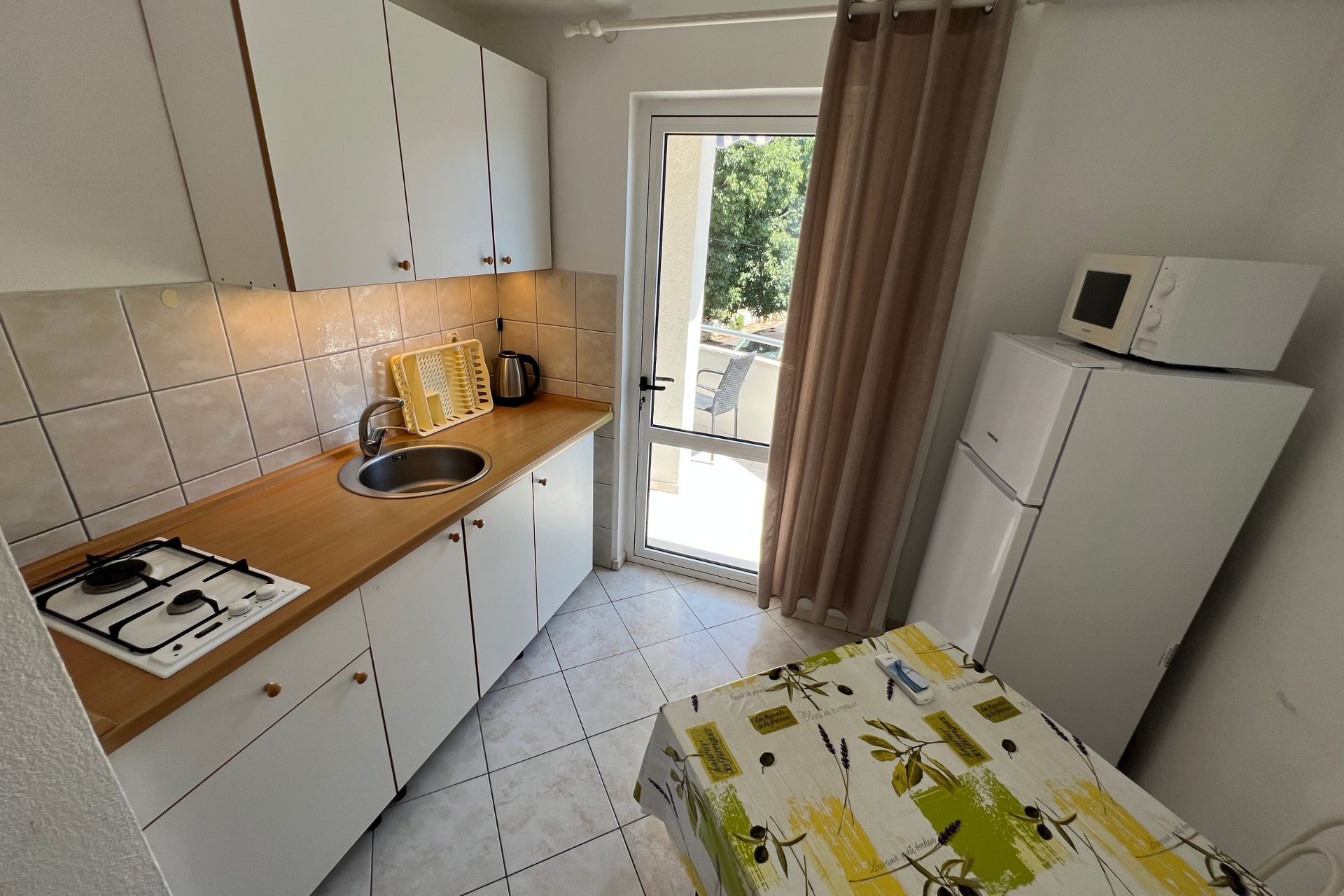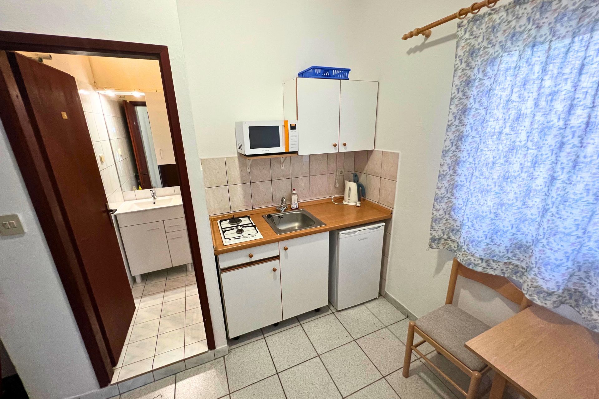 - kuchyň – vybavená pro základní vaření, rychlovarná konvice, mikrovlnná trouba, lednice