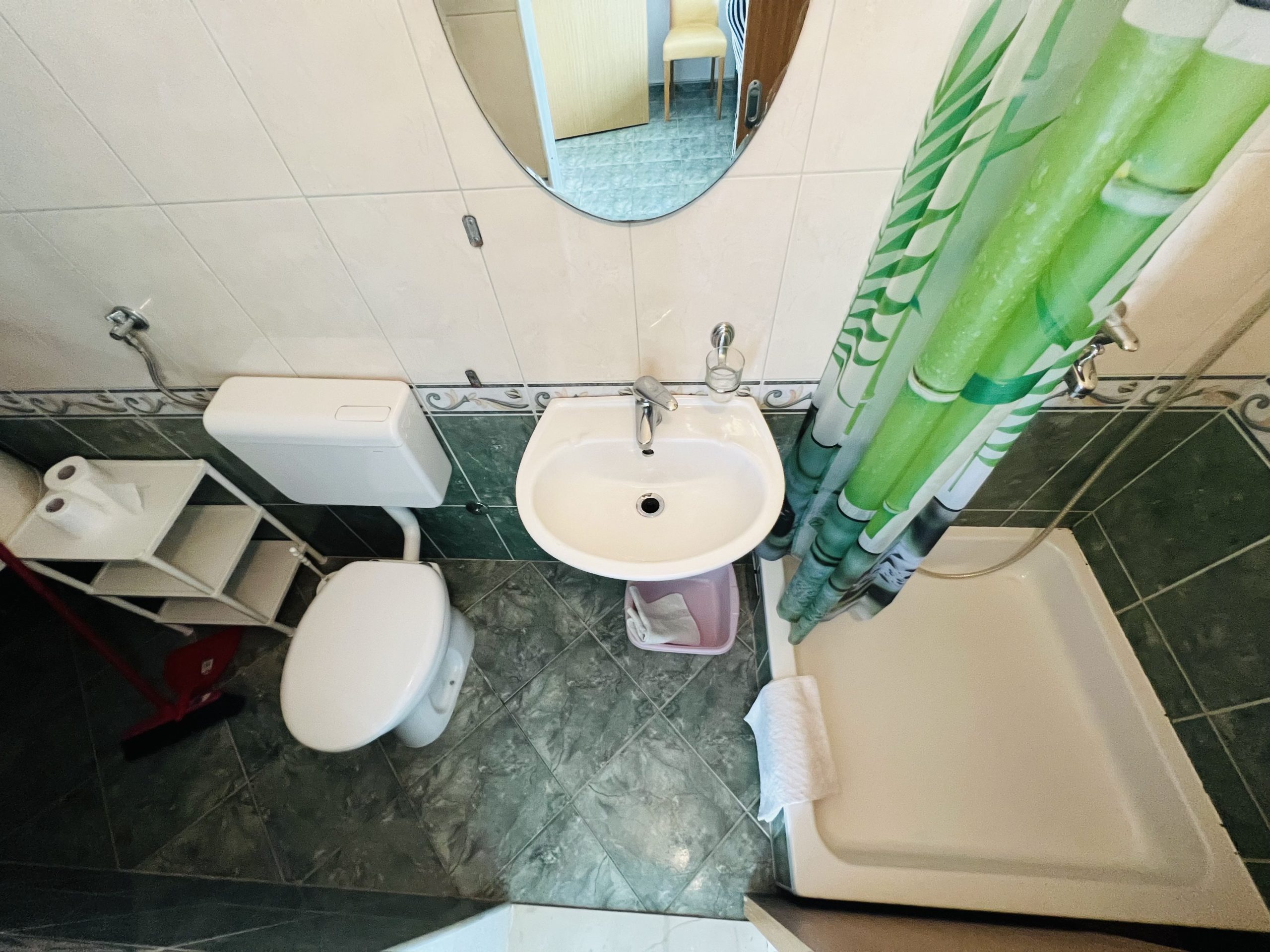 - koupelna – WC, sprcha, záchod, umyvadlo se zrcadlem
