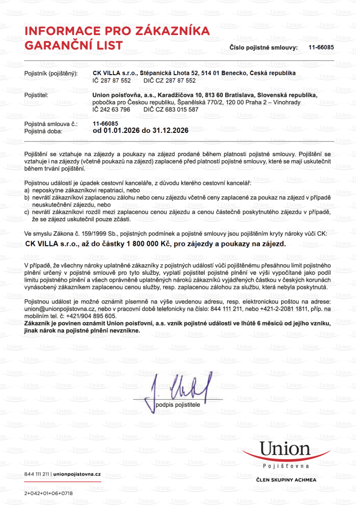 GARANČNÍ LIST 2026