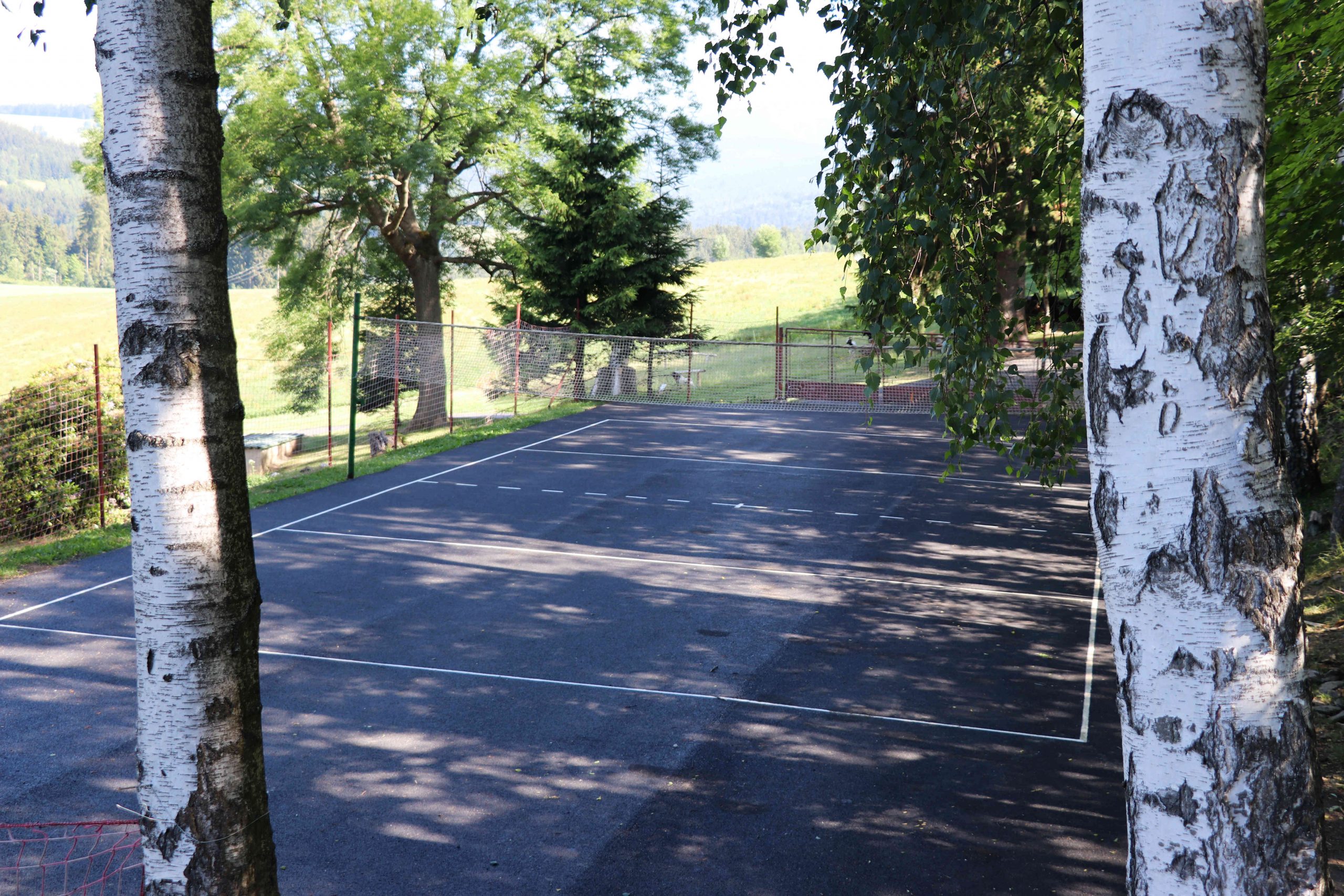 Parkování na velkém hřišti nad pensionem.